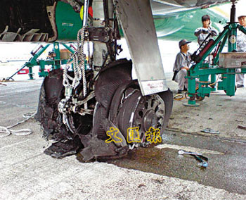 飛機(jī)其中一個輪軸嚴(yán)重受損。(圖片來源:文匯報)