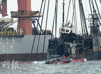 另有消息傳出廣州打撈局人員在晚上8時進行打撈工序期間,在沉船拖纜機左右兩邊先發(fā)現2具尸體,其后在船艙再發(fā)現2具尸體,但由于暫時不適合搜救,所以港方搜救人員暫未將尸體撈起。