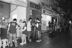 其余探員則進(jìn)入場(chǎng)內(nèi),截查可疑男女的身份數(shù)據(jù),借此預(yù)防各類涉及賭場(chǎng)罪案,期間帶走逾40名男女返警署作進(jìn)一步調(diào)查,預(yù)期類似的行動(dòng)將持續(xù)及不定期進(jìn)行。