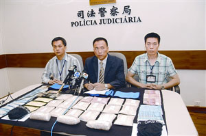 司警局發(fā)言人周偉光7日表示,這次是收到美國緝毒局經(jīng)國際刑警向澳門提供的線索,懷疑一名臺灣男子經(jīng)澳門偷運(yùn)毒品往印度尼西亞。警方根據(jù)資料鎖定追查案中48歲葉姓男子,他6日下午5時許與另外兩名被捕疑人由關(guān)閘一同進(jìn)入澳門,隨即被司警人員監(jiān)視。
