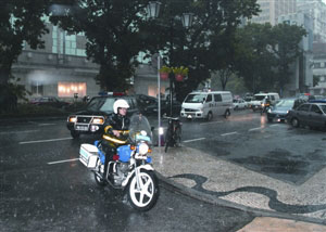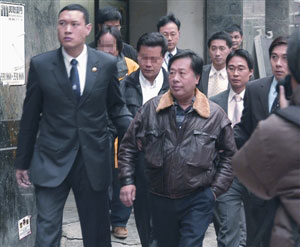 圖:歐文富夫婦由囚車冒雨送抵澳門初級(jí)法院聽判。(圖片來源:澳門日?qǐng)?bào))