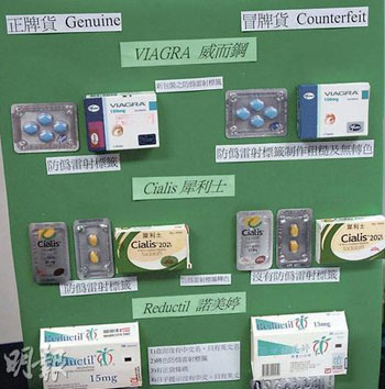 海關商標調查組指揮官趙育雄表示,6萬多粒冒牌藥物中,有4萬多粒是治療陽痿的藥品,另有2萬多粒抗抑郁及安眠藥。