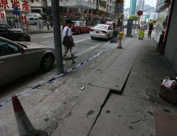 另外,高溫下土瓜灣北帝街出現(xiàn)懷疑“熱爆街”事件,行人路一幅約兩尺寬路面,突然石屎爆裂拱起約4寸高,不排除與天氣過熱有關(guān)。