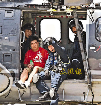 在東龍島爬山期間懷疑中暑的男子由直升機(jī)送院。(圖片來源:文匯報)