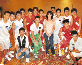 資料圖:五月八日,由香港無線電視舉辦的“2008香港先生選舉”活動展開宣傳攻勢,歷屆的"香港先生"與一眾年輕貌美的女藝員登臺公布詳情!跋愀巯壬边x舉將在八月二日舉行。 中新社發(fā) 洪少葵 攝