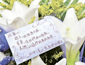 一群曾經(jīng)由殉職消防隊(duì)員蕭永方訓(xùn)練的消防學(xué)員,獻(xiàn)上鮮花及寫有“逝去但傲氣不滅”等字句的心意卡,向蕭永方致敬及表示懷念。(圖片來源:明報(bào))