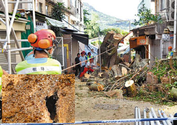中新網(wǎng)8月29日電 據(jù)香港大公報(bào)報(bào)道,香港赤柱日前發(fā)生塌樹造成一死兩傷慘劇,康文署連夜將現(xiàn)場清理,鋸去樹干及樹枝,寫上編號運(yùn)走重組樹身研究意外成因。塌下的百年老樹樹身發(fā)現(xiàn)大洞,已遭嚴(yán)重蟲蛀。有專家疑與“刺桐姬小蜂”侵襲有關(guān),指香港的刺桐樹普遍被侵蝕,雖可殺蟲但不能根治。