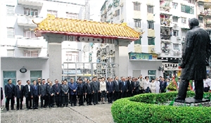紀念活動9日上午10時在鏡湖醫(yī)院孫中山先生銅像前舉行,鏡湖醫(yī)院慈善會邀請了澳門各界知名人士、社團代表出席集會。