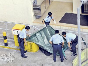 事發(fā)于28日早8時20分,身穿恤衫西褲的梁某離開何文田寓所,走到紅磡樂民新村樂善樓8樓梯間徘徊,不一會,他跨過一米高的矮墻一躍而下,直墮停車場入閘機旁,路旁兩米欄桿被壓毀呈“V“形凹陷。保安員吳某驚聞巨響視察,赫見梁某倒臥血泊奄奄一息,大驚報案,救護員到場檢驗后證實梁當(dāng)場斃命,毋須送院。