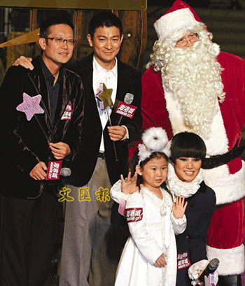 金融海嘯影響香港市道,但圣誕燈飾亮起添了幾分燦爛繽紛,華仔也在一顆星星飾物之上寫上“幸!倍,祝愿香港人永遠(yuǎn)都活得幸福。何韻詩都希望香港人能多“關(guān)注”和“包容”,劉偉強(qiáng)也祝愿“世界和平”。至于沒有出席的女主角舒淇,她也一早拍了片段,向市民講圣誕快樂。