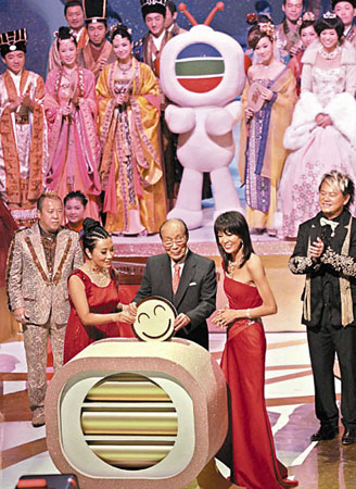 大會安排兩位司儀汪明荃和鄭裕玲穿著紅色晚裝,實行像兩封紅利是左右伴著年屆101歲的TVB行政主席邵逸夫爵士(六叔)主持亮燈儀式。