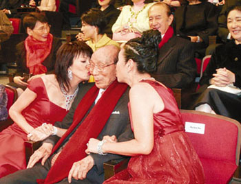 邵逸夫在太太方逸華陪同下,于7時15分乘坐房車到達將軍澳電視廣播城出席《萬千星輝賀臺慶》節(jié)目。六叔西裝筆挺,結上棗紅色頸巾,顯得精神奕奕,他由本屆港姐張舒雅和馬賽在兩邊攙扶下先行用餐,六叔的胃口甚佳,由助手把食物弄小后自行放進嘴里。
