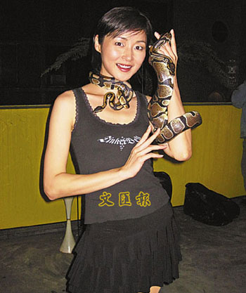 萬綺雯與蟒蛇共舞,并無花假。(圖片來源:文匯報(bào))