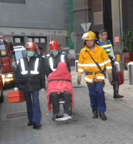 消防員接報趕到,在地面張開救生氣墊戒備,又派員上天臺嘗試走近游說,但事主一直情緒激動,無法收效。其妻子及女兒接獲通知趕到現(xiàn)場苦苦相勸,但不見效果,就在他與妻女傾談分神之際,在場消防員乘其不備撲前將他救返安全地點,不致釀成悲劇。事主沒有受傷,后在妻女陪同下由救護(hù)車送往廣華醫(yī)院檢查。事件擾攘約半小時。