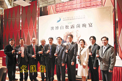 據(jù)香港文匯報(bào)發(fā)自澳門(mén)的報(bào)道稱(chēng),早前于澳門(mén)新葡京酒店舉行之“世紀(jì)白松露菌”國(guó)際拍賣(mài)會(huì),全球最大之白松露菌最后由澳門(mén)博彩股份有限公司行政總裁何鴻燊以33萬(wàn)美元投得。為了讓各方的賓客一嘗“世紀(jì)白松露菌”的神奇美味,澳博在新葡京宴會(huì)廳筵開(kāi)16席,將重金投得的白松露菌制成美味佳肴,款待來(lái)自各地的嘉賓好友,香港文匯報(bào)社長(zhǎng)張國(guó)良伉儷、副社長(zhǎng)韓力也成為座上客。