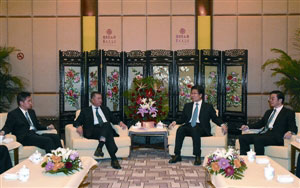 中新網(wǎng)3月18日電 據(jù)澳門日?qǐng)?bào)報(bào)道,澳門特別行政區(qū)行政長(zhǎng)官何厚鏵17日晚在北京釣魚臺(tái)山莊華天酒店與湖南省委書記張春賢、湖南省長(zhǎng)周強(qiáng)會(huì)面。張春賢感謝澳門特區(qū)政府、澳門同胞對(duì)湖南抗冰救災(zāi)期間的支持。