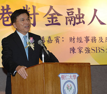 陳家強17日出席樹仁大學講座后表示,關注外國經(jīng)濟情況會否轉(zhuǎn)壞,但目前狀況不太清晰,需待美國的情況明朗化,才可清楚了解對香港的影響。他指出,香港財政司司長作出經(jīng)濟增長預測時,已考慮到各方面的因素,包括美國的次按問題、通脹情況、內(nèi)地的宏觀調(diào)控措施等。直至目前為止,沒有需要更改該預測。