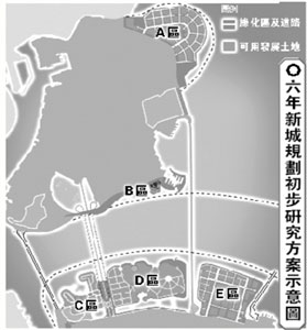 圖:2006年新城規(guī)劃初步硏究方案示意圖。(圖片來源:澳門日?qǐng)?bào))