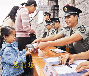中新網(wǎng)4月28日電 據(jù)香港文匯報(bào)報(bào)道,五一勞動(dòng)節(jié)當(dāng)天,市民再次有機(jī)會(huì)與解放軍駐港部隊(duì)作近距離接觸。解放軍駐港部隊(duì)27日晨在添馬艦、石崗及槍會(huì)山軍營派發(fā)一共8000張門票,吸引大批市民到場輪候,部分人更在取得門券后再排隊(duì)領(lǐng)取。