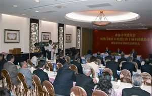 楊崇匯贊揚澳區(qū)全國政協(xié)委員一向關(guān)心祖國的統(tǒng)一大業(yè)。很多委員利用自己的威望、影響和廣泛的社會聯(lián)系,在反“臺獨”、促統(tǒng)一的工作中發(fā)揮特有作用。