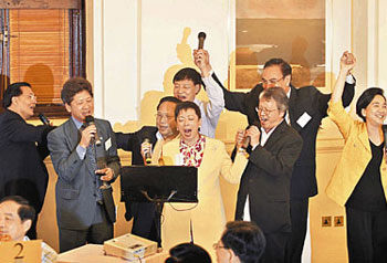 一眾議員高歌一曲《朋友》,大家流露依依不舍之情。(圖片來(lái)源:文匯報(bào))