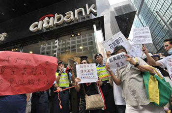 立法會財經(jīng)事務(wù)委員會主席陳鑒林批評,銀行公會的做法雖然是準確地反映事實,但卻未盡上道義上的責(zé)任。“等待受托人和雷曼清盤人之間的法律爭執(zhí)完結(jié)后才回購,并不是苦主的責(zé)任,銀行的回購計劃根本不能和法律爭拗掛鉤。法律爭執(zhí)的時間越久,對苦主越不利。銀行必須盡快回應(yīng)苦主訴求!