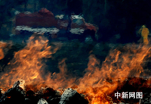 中新社洛杉磯十月二十三日電 (記者 賈國榮)美國加州火災(zāi)在又熱又干的狂風(fēng)紅旗警報(bào)中,第三天繼續(xù)呈蔓延之勢(shì),目前已有大小火場二十二處,布什總統(tǒng)明天將前往視察,軍隊(duì)急忙增援。
