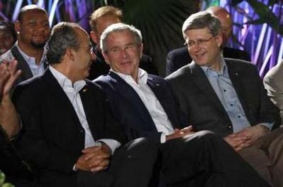 在舉行多邊會談之前,布什在21日分別與卡爾德龍和哈珀舉行了雙邊會談,強調(diào)美國與墨西哥和加拿大關系的重要性。