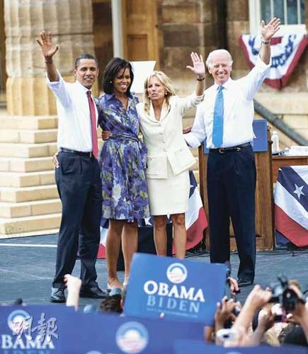 ·美民主黨總統(tǒng)競選人奧巴馬攜副手首次同臺亮相