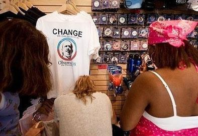 隨著美國民主黨全國代表大會(huì)在丹佛召開,奧巴馬被正式提名為民主黨總統(tǒng)候選人,與奧巴馬有關(guān)的各種紀(jì)念品開始充斥著丹佛的大街小巷,T恤衫、紐扣、鼠標(biāo)墊、手提袋,甚至女性的內(nèi)衣褲上都出現(xiàn)了奧巴馬的頭像和簽名。