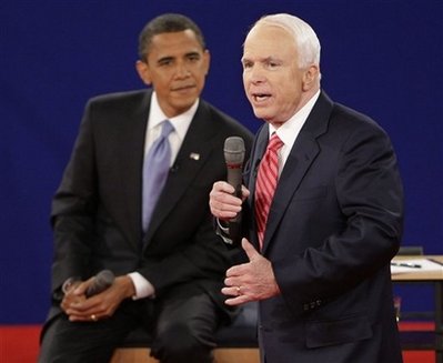 中新網(wǎng)10月8日電 綜合報道,美國當(dāng)?shù)貢r間10月7日晚上21點左右(北京時間10月8日早上9點左右),美國共和黨總統(tǒng)候選人麥凱恩和民主黨總統(tǒng)候選人奧巴馬在田納西州的貝爾蒙特大學(xué)開始辯論,這是兩人選舉議程的三場辯論中的第二場辯論。