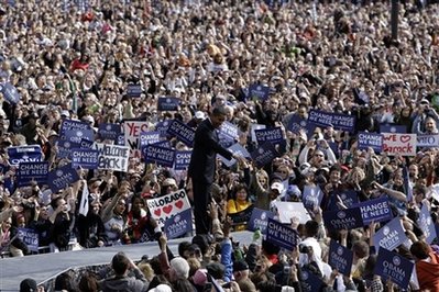 奧巴馬在科羅拉多的兩場造勢大會,吸引了15萬人蜂涌而至,在丹佛參加大會的民眾超過10萬。