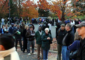 中新網(wǎng)11月4日電 大選之日,美國弗吉尼亞等地區(qū)相繼出現(xiàn)機(jī)器故障以及投票機(jī)配置不足等問題,導(dǎo)致居民排起長隊(duì)等候,拖緩了投票進(jìn)程。