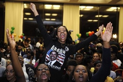 奧巴馬支持者歡慶奧巴馬獲勝。