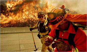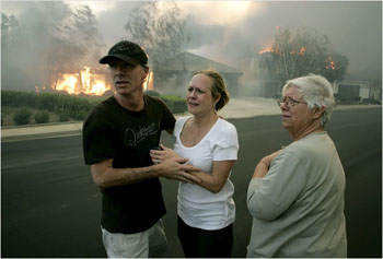據(jù)英國廣播公司報道,目前,在受災嚴重的圣塔巴巴拉附近,已有幾所價值數(shù)百萬美元的豪宅化為灰燼。往東80英里的洛杉磯郊區(qū)西爾瑪,大火吞噬了約500所移動民宅。 再往東,另外一處勢頭強勁的大火在河畔和奧蘭治縣熊熊燃燒,20萬居民被迫緊急疏散。當?shù)毓賳T表示,重鎮(zhèn)洛杉磯隨時面臨斷電危險。