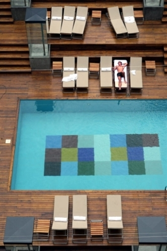 該賓館的設(shè)計者強調(diào)指出,賓館最重要的設(shè)計特色就是人們可以充分在戶外活動,意指“同性戀可以正大光明地生活”。位于賓館頂層的是一個超大游泳池。