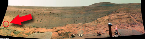 不久前,美國宇航局“勇氣號”火星探測器發(fā)回一系列火星表面的照片,有天文愛好者竟在其中一張照片中發(fā)現(xiàn)一個類似女性外形的“火星人”。難道真的有“外星人”?