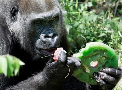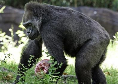 野生大猩猩的平均壽命在30歲到35歲之間,詹妮的年齡顯然遠(yuǎn)遠(yuǎn)超過上述范圍。詹妮平時的食物以種子、谷物以及香蕉等素食為主,這可能是它長壽的秘訣。(聞天)