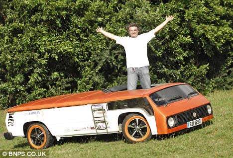 英國人安迪·桑德斯和三個朋友用了3天時間,將一輛高2.4米的大眾轎車改裝成了世界上最矮的露營巴士——高度還不到1米。