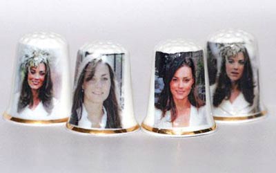 總部設(shè)在英國的一家中國頂針制造商的設(shè)計(jì)人員近日設(shè)計(jì)出一套以凱特為主題的頂針。每個(gè)頂針上都印有凱特的笑臉,而且每個(gè)頂針上的圖案都不同:凱特戴著不同款式的帽子。由于圖案有所區(qū)別,更增加了這套頂針的收藏價(jià)值。目前每套頂針的售價(jià)是4.40英鎊。