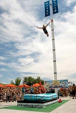 據(jù)報道,今年47歲的達倫·泰勒是美國丹佛的一名極限跳水運動員,他從4歲開始練習跳水,10歲起參加跳水比賽,22歲時開始嘗試“高空淺池跳水”極限運動——這項運動危險性極大,跳水者必須從空中準確跳入一個3米長、1.5米寬、而且最多只裝有0.3米深的水的淺水池中。