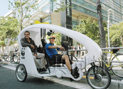 中新網(wǎng)9月14日電 最近東京街頭出現(xiàn)了一種速度快于步行,但又比自行車稍慢的德國(guó)產(chǎn)三輪出租車“Velotaxi”。據(jù)日本共同社報(bào)道,乘坐這種出租車可以通過從未體驗(yàn)過的行駛速度瀏覽東京街景,很受外國(guó)游客的歡迎。