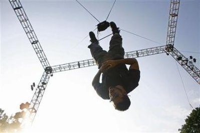 中新網(wǎng)9月24日電 醫(yī)師說,試圖在紐約中央公園表演倒吊三天的美國知名街頭魔術(shù)師戴維-布萊恩,23日進(jìn)入倒吊第二天,健康狀況良好。
