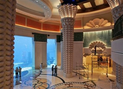 據(jù)香港《大公報》報道,這間超豪酒店名為亞特蘭蒂斯,耗資十五億美元興建,坐落迪拜的棕櫚人工島上,占地一百一十三畝,有一千五百三十九個房間,早于今年二月一日便開始接受客人預(yù)訂房間。