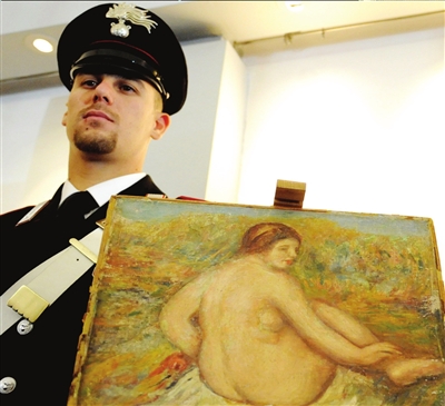 中新網(wǎng)9月28日電 據(jù)共同社援引意大利安莎通訊社報(bào)道,警方日前找到了1975年在意大利米蘭市失竊的法國(guó)印象派畫家雷諾瓦的名畫《裸女》,并逮捕了3名嫌犯。這幅價(jià)值50萬歐元的名畫在失竊33年后終于失而復(fù)得。