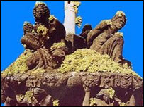 數(shù)千升當(dāng)?shù)禺a(chǎn)的白葡萄酒被輸送到鎮(zhèn)中央廣場(chǎng)的一座噴泉。