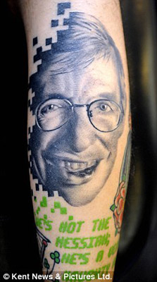 英國小伙杰克·牛頓由于對科學(xué),特別是天體物理學(xué)熱愛到難以自拔的程度,日前他將著名科學(xué)家史蒂芬·霍金的頭像紋在了腿上。