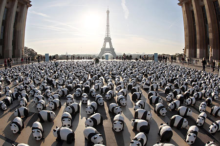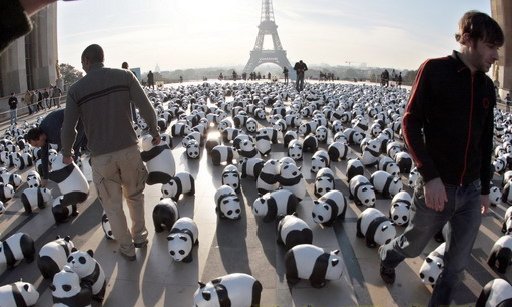 中新網(wǎng)10月20日電 綜合報道,10月18日,在法國首都巴黎,1600只紙制熊貓被放置在廣場上供人們參觀。這一活動由世界自然基金會(WWF)發(fā)起,旨在呼吁人們保護(hù)為數(shù)不多的大熊貓,同時提醒人們保護(hù)賴以生存的自然環(huán)境。