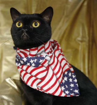 中新網(wǎng)10月20日電 綜合報道,由愛貓者協(xié)會發(fā)起的貓展日前在紐約麥迪遜廣場花園舉行,為配合美國總統(tǒng)大選,貓展還特設(shè)了一個環(huán)節(jié):選出你認(rèn)為最能代表民主黨或共和黨的貓,最后一只英國短毛貓當(dāng)選為麥凱恩的候選“代言人”之一,而另一只名叫 “小黑豹”的孟買貓被命名為“奧巴馬”。