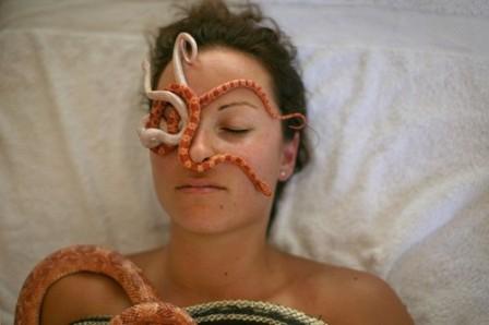 據(jù)悉,顧客之所以敢嘗試蛇式按摩,是因?yàn)樗麄兿嘈乓坏┛朔俗畛醯囊蓱]心態(tài),那么他們便會(huì)發(fā)現(xiàn)與動(dòng)物的身體接觸完全可以令自己的心靈受到撫慰,并進(jìn)而變得輕松自如。
